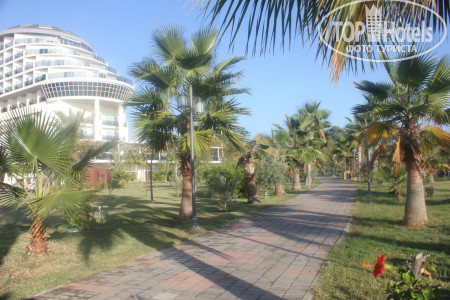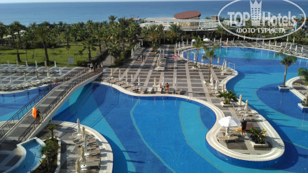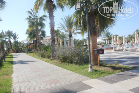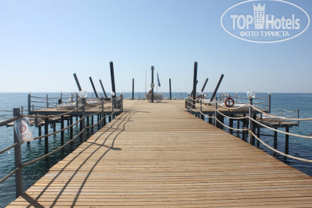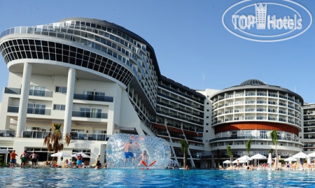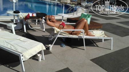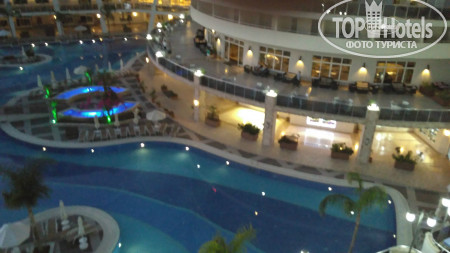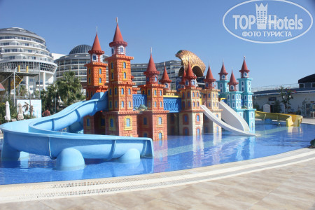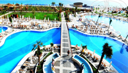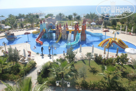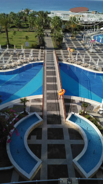 Самое неприятно - это дорога в отель, вроде по км не очень далеко, но заезды для высадки предыдущих пассажиров занимают 2 часа. Так что готовьтесь к долгой доставке. По приезду заселили сразу, может потому что приехали в 19-30. Номер дали с боковым видом на горки аквапарка и море!! Без доплаты. Большинство номеров в этом отеле кстати, с видом на море. Поэтому прежде, чем предлагать $ за вид стоит посмотреть номер. Территория не огромная - всегда можно было найти друга друга, если разминулись. Дочка вообще ходила везде сама и не заблудилась. 2 огромных плюса этого отеля - несколько ресторанов, от чего не создается впечатление столовой в школе, где все галдят и визжат. И второй плюс - это большой бассейн - место можно было найти всегда, в любое время. На пляже хоть лежаков и немного, но в море нет толкучки, мне вообще иногда казалось, что мы одни там плаваем. На пирсе тоже место всегда находили. Горки отличные. Не понимаю людей, которые жалуются на стыки - во скольких отелях бывали, сколько аквапарков посетили, горки - это горки. Я стыков не чувствовала в своей жизни только на одной горке - Камикадзе. Если есть неприятные ощущения -купите круг и будет вам в жизни счастье и поедете, кстати, веселее. Очень порадовал смотрящий на горках, потому что некоторые дети вели себя отвратительно и небезопасно. Во время нашего пребывания в отеле с обслуживающим персоналом в ресторанах было все отлично. И столы убирались вовремя, во время ужина сами подходили спрашивали что будете пить, ребенку во время ужина приносили напитки по его желанию. Все официанты и бармены говорят и понимают по - русски. Поэтому я очень удивилась, что на ресепшене мало понимают русскую речь, вроде персонал звеном выше. Даже носильщик при заселении в лифте сначала рассказ по-немецки все одной семье, потом нам тоже самое по-русски. Но гастрелейшн сидит девушка, которая отлично знает русский, можно обратится к ней. У нее же, кстати и запись в аля-карт. Мы ходили в мексиканский. Еды не очень много, но подача горячего интересная - приносят в горячих горшочках. Для разнообразия сходить можно. Выбор еды есть, говядины и свинины много. В этом отеле ели сладости, хотя до этого ни в одном отеле они нам не понравились. На поздний ужин можно поесть не только суп, как в большинстве отелей, но есть еще несколько видов горячего, овощи и фрукты. Свои услуги ни фотографы, ни водный спорт, ни хамам не навязывали ни разу, просто проходили с листовками, кому надо просили. В каждом баре есть табличка с перечнем коктейлем, входящих во все включено, на выбор штук 5. и детских тоже 5-6. Еда есть всегда. Но в ресторане около пляжа она каждый день одна и та же, разнообразия нет, зато там готовят очень вкусные макароны с разными начинками на ваш выбор. Территория очень чистая и ухоженная. Уборка в номере номинальная, только видимость создают, но нам было на нее плевать, главное полотенца всегда чистые в достатке.