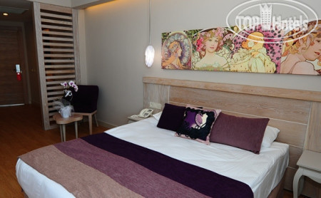 Мы любим ездить в Сиде осенью, в это время море очень теплое, жара мягкая и вечера теплые. Отель мне понравился с первого взгляда. Очень красивый, с великолепным экстерьером и интерьером! Номер нам дали с панорамным остеклением с видом на бассейн и горки. Номер очень современный в стиле модерн. Единственный минус, что вечернее освещение номера очень приглушенное и макияж нанести или книгу почитать не получится. Только спать или смотреть телек. Красивая территория отеля, аквагорки понравились, есть и не крутые для детей помладше и детская зона.