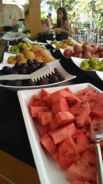 Плюсы: большой бассейн, благодаря чему нет супа из людей. Много ресторанов, всегда есть места и не надо ходить с тарелками в поисках свободного столика. Много мяса, именно мяса, а не курицы, что не может не радовать.