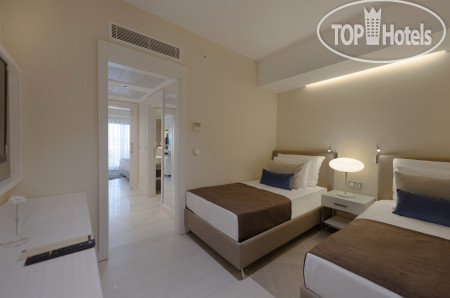 Номера не соответствуют цене за отель - они небольшие ( видели 2 -3 номера, так как первый номер , который дали сначала , был очень маленьким, второй двухкомнатный - тоже небольшой; в итоге больше понравился номер на верхнем этаже , где была небольшая терасса под крышей с шезлонгами и столиком 👍) Но вот вторая односпальная кровать в этих номерах (тахта или кресло-кровать) очень неудобная. Сантехника и ремонт в ванной комнате староваты, можно и обновить.