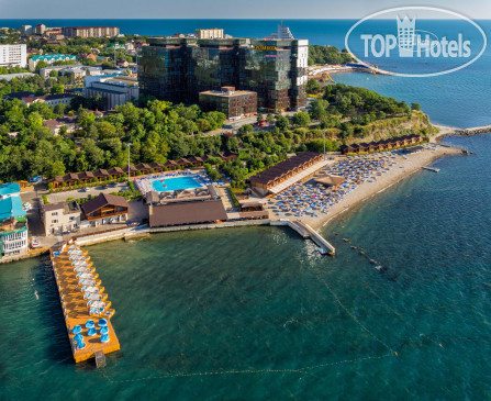 ЗОЛОТАЯ БУХТА Очень хороший отель! Но есть большое но : Заход в море практически нереален так как в воде булыжники от какой то мега стройки, поранится вероятность 50/50. Не думаю что это кому то приятно на отдыхе! Приехать на море и не купаться опасаясь сломать ноги, пораниться Но некоторые сразу с берега идут так сказать в плавь. ВОДА КРИСТАЛЬНА ЧИСТАЯ - НЕ НАЙДЕТЕ ПО ВСЕМУ БЕРЕГУ! Море теплое! Закаты обворожительно красивые! Территория отеля написать "хорошая территория" это написать не о чем! Территория отеля построена так что Вы попадаете в некий сказочный островок который находиться на берегу моря с шикарными видами!!! Отдельно стоящие красивые домики среди пихтовых деревьев по аллее с отдельными входами и своим палисадником в котором растут розы разных видов! Сами домики с подсветкой что придает им очень сказочный вид! Вдоль алли скамейки под пихтовыми деревьями что очень впечатляет. Вся дорожка в подсветке фонариков расположенные не далеко друг от друга что придает некий романтизм освещению всей аллеи. Очень приятный услужливый персонал отеля. Бассейн отеля довольно хорош , спуск по ступенькам, имеет подсветку и другими прибомбасами в виде противотока и джакузи-это очень классно! Еда, вкусные завтраки меня поразили так как обычно редко завтракаю потому что не что не нравиться. Жил в бунгало с видом на море! Шикарные закаты видны из номера где можно наблюдать их в кресле на балконе, слышен шум моря! Очень красиво! Отель находиться по локации очень удобно. Рядом причал где можно заказать экскурсию, рядом из отеля бары, рестораны, и неважно с какой стороны сегодня решили прогуляться по красивым местам набережной Анапы! Набережная по обе стороны выхода из отеля! Отель сам очень понравился за исключением входа в море! Море очень кристально чистое это большой плюс! Всем приятного отдыха и классных впечатлений!