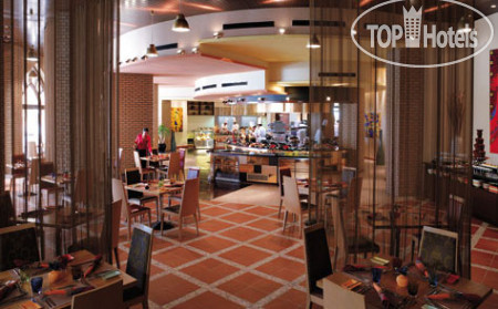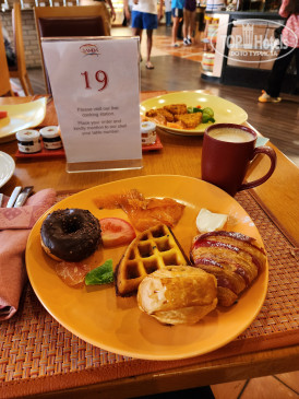 ПИТАНИЕ. У нас были включены завтраки в главном ресторане с 6.30 до 10.30. Столики есть и  в помещении, и на улице (там очень жарко и снуют наглые птички). Завтрак просто потрясающий. Есть всё. Вкуснейший слабосоленый лосось, подкопченный лосось, творожные сыры, свежеиспеченные венские вафли и 2 варианта панкейков, соки хорошего качества, картофельные драники-треугольнички, пончики, даниши, круассаны и слойки на любой вкус, различные нарезки из сыра, колбас, овощей. Какие-то салаты, супы, шакшуша, индийская кухня, хумус, каша, йогурты, сухие завтраки, сосиски, бекон и т д. Готовят яичницы, омлеты. Кофе и чай приносят официанты (хоть холодное, хоть латте, хоть какое). Не могли найти соусы, в итоге официант принес необходимый нам соус. Из фруктов – арбузы, ананасы, дыни 2 видов, питахайя, сливы, груши, яблоки, фруктовые салатики. Всё вкусное.