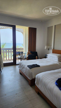Рассматривая различные варианты отелей в Омане, сразу же влюбились в фотографии и описание данного отеля – шикарный пляж, огромная ленивая река, хорошие бассейны, потрясающий вид из номера... За два месяца до поездки нами был забронирован номер на двое суток. Но примерно за 2 дня до заселения, когда мы уже были в Омане, нам пришло сообщение от  отеля, что у них не будет работать ленивая река, так как там идет ремонт. А это была одна из главных причин посещения данного курорта.. И никакой скидки взамен нам не предоставили, что считаю очень обидным моментом! В итоге решили все-таки не менять отель, а поехать в данный из-за хорошего пляжа.
