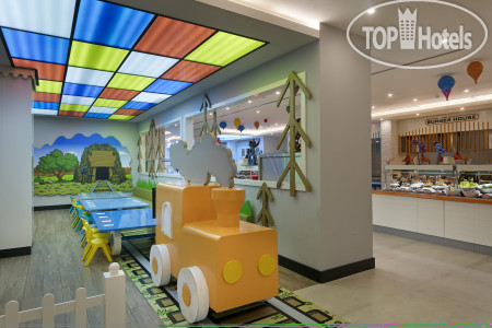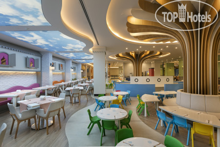 Еда: очень вкусная, правда, я тоже русская и не великий любитель турецких специалитетов, но здесь вообще что бы ни попробовала все очень вкусное. Есть диетическое меню (вареный рис, курочка и брокколи), есть отдельный детский ресторан, где низкая линия раздачи, чтобы ребяткам было удобно брать еду самостоятельно и низкие столики (+ телевизоры с Томом и Джерри и Машей и Медведем).