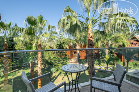 Нам дали номер с видом на горы, апельсиновый сад и парковку, номер на 2м этаже. Я специально не стала просить вид на бассейн, поскольку там южная сторона, а значит солнце весь день и нужно будет сидеть с кондиционером, во-вторых вид на бассейн, а значит может быть шумно. С моей стороны солнце только утром, что облегчает пробуждение детей, а также пение птиц и тишина.
