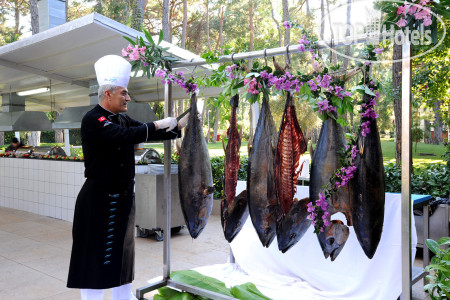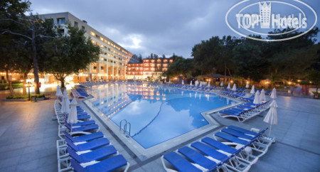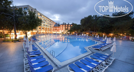 Были в этом отеле в начале июня , собрались спонтанно , выбора особенно не было... Забронировали экорум(( В Турции уже была 17 раз.. Итак : отель старенький , если вы забронировали экорум, не обольщайтесь - он будет не экологичным , а экономичным маленьким с видом на раскаленную крышу ! Нам пришлось доплатить 70$ за 7 дней , что бы получить такой же маленький ,но с видом на СПА крышу из которой переодически валил дым ( это же СПА) внизу которого собирался персонал на чаепитие.. Еще блондинка с каменным лицом на рецепции предлагала номер с видом на бассейн, за который нужно доплатить было 140 $ ..мы остановились на первом ( он хотя бы был в тени).. Что бы добраться до номера , нужно пройти два длинных душных коридора.. В номере кондиционер центральный и работает только на +25 , ночью довольно мучительно... имейте ввиду ! Еда нормальная , разнообразная на любой вкус.., один раз за неделю была клубника, иногда были морепродукты , в кафе у моря еда по меню быстро вкусно. Из ультра было только мороженое везде и поздний ужин ) В аля карт не попали - запись за неделю(((. Заход в море можно для себя подобрать ..или с пирса или в тапках , или с поручнем. Для детей много всего. И самое главное: что мне резало слух -это музыка .... она везде и везде старая , как будто я вернулась в Турцию на 30 лет назад ! Диджеям ставлю двойку !!! Даже в вечернем шоу на пляже пели одно старьё , вот как выучили песни 30 лет назад , так и поют их 30 лет ничего не меняя((( Вывод : если вас не смущает духота в номере , старые номера и надоевшие хиты аля 90-х , то вам сюда.. Но за эти деньги , я бы поискала что нибудь поновее и современнее.. Наша цена была 193000 + 70$ доплата на 7 ночей с 29.05 по 5.06-2025г.