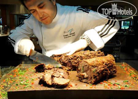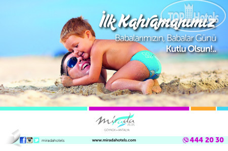 Всем привет! Вкратце об отеле скажу- Mirada очень хороший отель во всех отношениях, начиная от ресепшен и заканчивая пляжем! Отель не новый, но очень ухоженный, зеленый, много цветов и деревьев, особенно на территории где находится мини зоопарк! Персонал отеля убирает постоянно , что-то пересаживают, поливают, обрезают! Трудятся как муравьи, без отдыха! Молодцы, одним словом! Бассейны чистые, убирают и чистят каждый вечер, лежаков хватает и возле бассейнов и у моря. Питание на оценку 5+, рыба и морепродукты (форель, дорада, скумбрия, мидии, креветки и т.д.), мясо тоже на выбор- курица, индейка, говядина, баранина(даже антрекотики пистолетики были), очень понравились спагетти с различными соусами и тертым сыром. По питанию вопросов никогда не было! Даже в период когда проходила конференция в отеле- мест и еды в главном ресторане хватало всем! Перекусы в течении дня это отдельная тема- они есть и их много, возле моря есть бар по меню- очень вкусно, и пица и мясные блюда, недалеко от моря гезлеме -супер, особенно с айраном , кондитерская со сладостями, мороженое каждый день и шариками видов 5 наверное и штучное в упаковке! Алкоголь нормальный, пиво было и разливное и бутылочное, из крепких импортных напитков и виски, и ром и текила, и водка! Шампанское и вино турецкие. Анимация в октябре слабенькая конечно, но нам хватило и танцев и дискотек, и различных вечерних шоу! Дневная анимация для детей была, они и рисовали, и шары запускали и минидиско устраивали! Рекомендую отель! Не знаю правда или нет, работники говорили, что в отеле проживает хозяин (может быть управляющий отеля), и питался он в этом же ресторане где и мы! Судя по-всему похоже на правду, по утрам на завтрак приходил мужчина всегда за один и тот же столик! Вообщем все было отлично! Спасибо персоналу отеля за отдых!