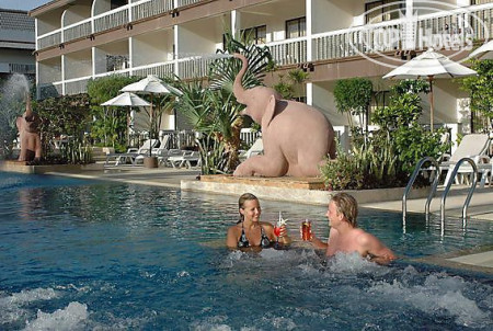 Отель в традиционном тайском стиле. Территория отеля состоит из нескольких локаций. Лобби - красивый, просторный, видно обновленный, на открытом воздухе, стоит в особняке по отношению к другим частям отеля. Через подъездную дорожку расположены кафе, корпуса, бассейны.