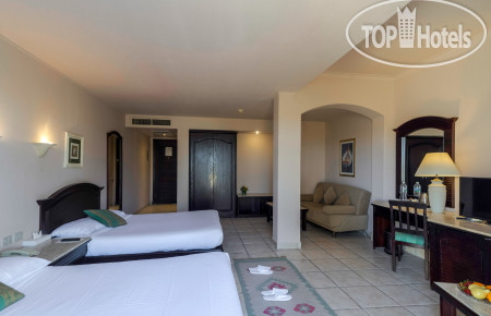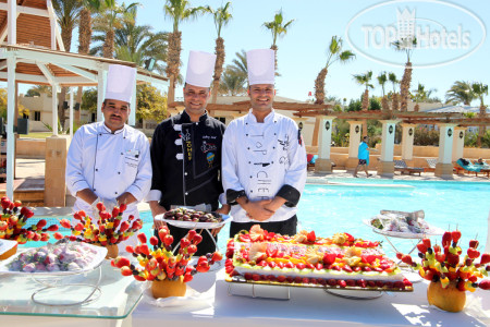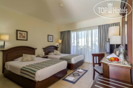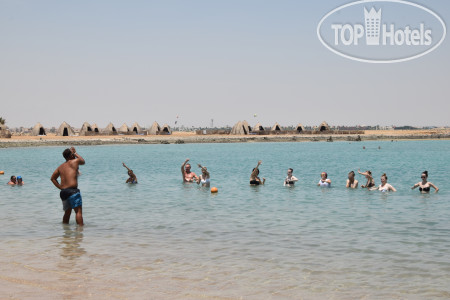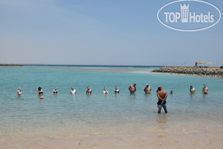 Приехали около 16 00, сразу заселили. Первый блок корпусов, номер хороший, большой, матрас хороший, сантехника рабочая, кондиционер тоже. До пляжа 5-7 мин идти. Самое лучшее это конечно пляж, лежаков много, всем хватает во сколько бы не пришел. Пляжи шикарные, всего 2 больших песчаных пляжа и понтон, где риф. Можно купаться каждый день на разном) Где риф, много рыб (скаты, крылатки, разные мелкие рыбы, черепахи). Скаты прямо у берега плавают. Вода чистая, заход на песчаных пляжах пологий. Вкусные свежевыжатые соки на пляже, можно брать абонементом, дешевле (выходит 2 $ за сок). Территория отеля большая, можно погулять, чистая. Есть лошади, верблюды. Еда обычная, изысков нет. Есть овощи, различное мясо, пирожные некоторые вкусные. Спрайт, колу и пр. наливают из бутылок, что хорошо. Фруктов почему то мало, не было ни разу манго. Был ремонт в ресторане, что не удобно. А-ля карт рестораны понравились, стоит сходить Египетский и Итальянский. Ездили в Хургаду, таксисты у отеля конечно охреневшие. Гнут 10$, ловишь на дороге за 5$ еще им говорят, что бы за 10 везли. Работать не хотят, ездят на убитых машинах и еще недовольны деньгам которые им даешь. Персонал отеля приветливый. В целом отель понравился, да еще и за бюджетные деньги.