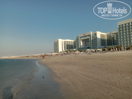 Пляж большой, очень чистый, лежаков много, но песок сильно нагревается и в нем много мелких ракушек, босиком ходить не очень приятно, рекомендую кораллки. Тем более я умудрился наступить на морского ежа, к счастью, без серьезных последствий. Вода в сентябре +35 градусов, не очень прозрачная, но чистая. Территория, доступная для заплывов, огорожена буйками. Всегда в наличии спасатель. Лежаки, на мой взгляд, имеют один большой минус - они металлические, и сильно нагреваются днем. В целом, достаточно малолюдно, все тусуются возле бассейна. Живности маловато, какие-то страшненькие серые рыбки и такие же морские звезды, один голландец клялся мне, что видел морскую черепаху, но тут уж это остается на его совести.