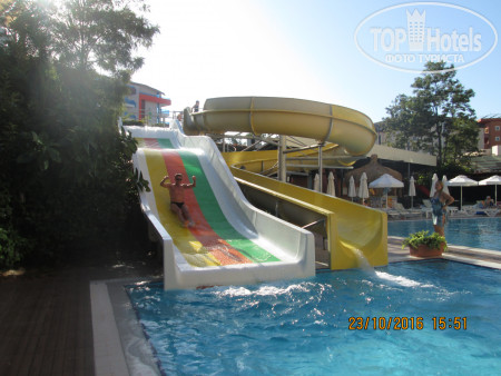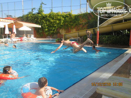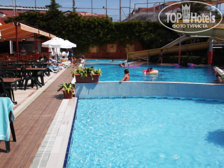Питание неплохое, никто не отравился)), контингент 40% русские и 60%турки. Делайте выводы сами. Пляж минут 7 пешком, неторопливо если , с детьми, то 10, и он просто набит под завязку. То есть там такая скученность, что кажется, ты в Сочи приехалa, в воде около берега вообще одни тела и головы, если не отплыть, там только стоя можно. Да, песок, да, заход пологий, но при таком количестве народа....(((( Рядом стоит Ланисера, у них все нормально, хотя она в несколько раз больше нашего супер экономного отеля.