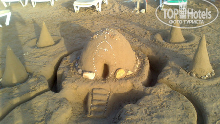 ПЛЯЖ И МОРЕ очень чистые, море прозрачное, нет ни рыб, ни медуз, ни камней ничего очень тёплое и чистое это плюс. На пляже есть бар , там нет алкогольных напитков, но есть кола фанта и спрайт. Там хороший тоже парень работает, выносит матрасы на лежаки с утра и где-то к 7 их убирает, если попросишь принесёт попить. Нам очень понравился)) если кто-то ложился из чужих отелей на наши лежаки, он просил уйти.