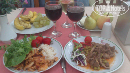 Ребенок 2 дня ел, потом утром переблевалась и есть перестала. Изначально думала проблема в ребенке, смена климата, жара и тд. Но получив на ужин тухлую курицу ( на одном ужине мяса не было совсем) поняла, что ребенок то не при чем, дело в еде. Накормила ее покупными банками, которые привезла с собой, все съела, повеселела. Сходила в магазин, купила заварную кашу, фруктовые банки, овощных не было.