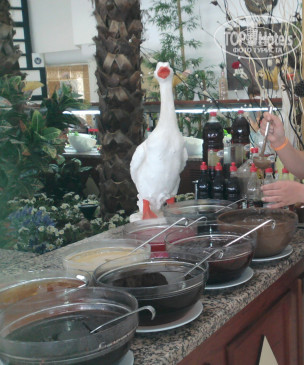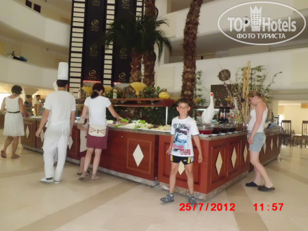 Питание хорошее. Несмотря на отрицательные отзывы, голодным быть невозможно. Каждый день было 3–4 варианта блюд из мяса — тушёное мясо, котлеты, жареное на гриле, рыба и тешеная, и на гриле, каждый день меню разное, не успевает надоесть. Вкус у котлет и колбасок специфический, турецкий, но это не «соевые» продукты, просто национальные особенности.