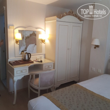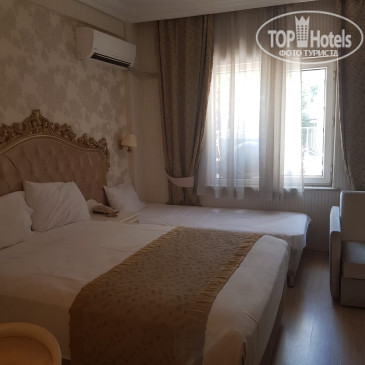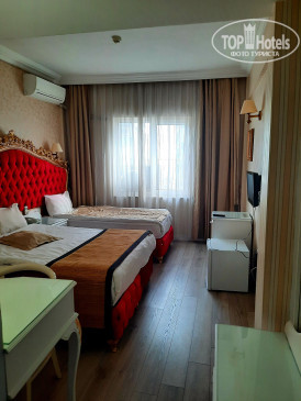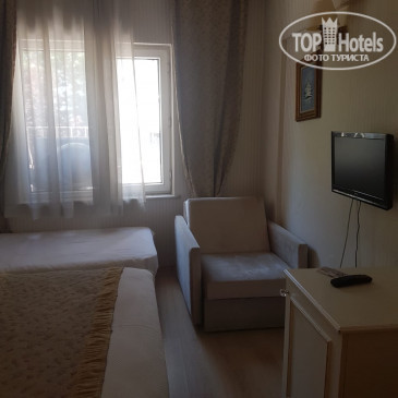 Он нам понравился, номер был стандарт на 3 этаже, небольшой, приятный интерьер, вид на улицу и Мраморное море между домов, очень удобные кровати с новыми матрасами, в номере есть холодильник, сейф, телевизор, набор для приготовления чая, тапочки, фен, мини-косметика, в номере хорошо убирали и все исправно работает, ремонт уже не очень свежий, но вся мебель в приличном состоянии, отель постепенно обновляют. Лифт есть, на первом этаже вкусный ресторан, но цены выше чем в соседних ресторанах. Вайфай есть.